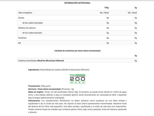 CREATINA ULTRA PURE (Creapure®) ESSENTIAL 300GR .