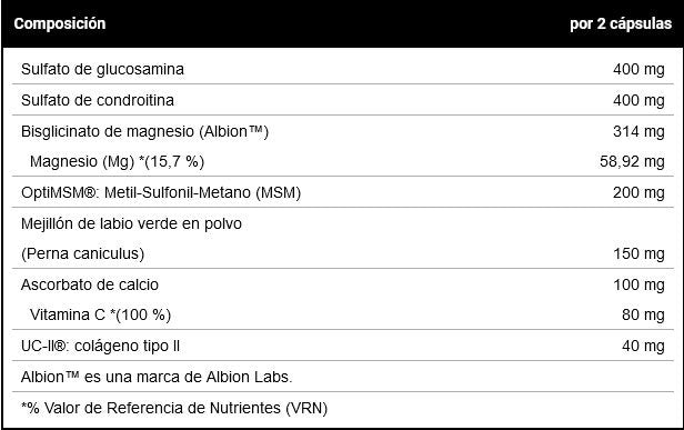 - Colágeno UC-II® + Sulfato de glucosamina & Condroitina + MSM (OptiMSM®).