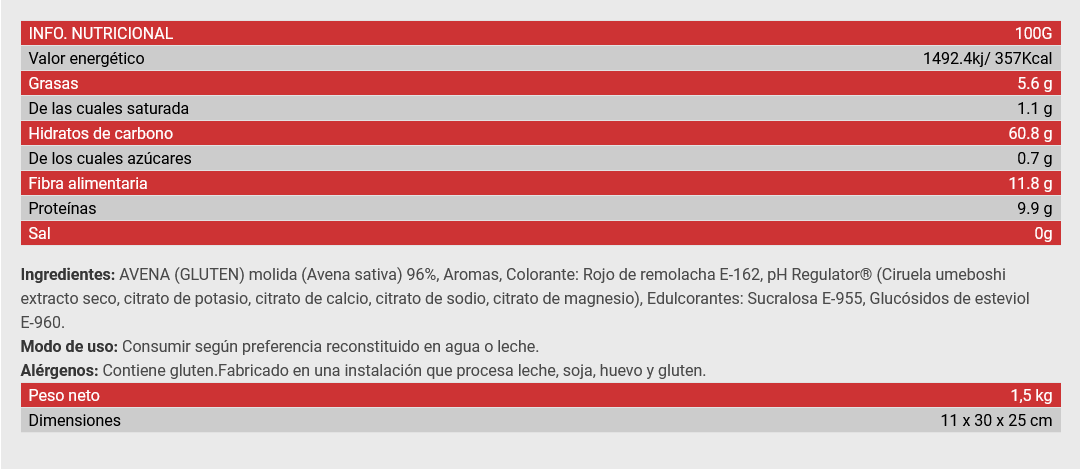 Te gusta empezar el día con todos los beneficios de nuestras harinas de avena como vitaminas grupo B&E, fósforo, hierro, proteínas, hidratos de carbono, magnesio, calcio