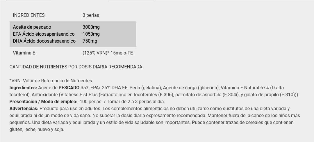 Omega-3 Fish Oil de BIG® es una excelente fuente de ácidos grasos Omega-3, pertenecientes al grupo denominado grasas saludables, con un contenido de 35% EPA, 25% DHA y un aporte extra de vitamina E.