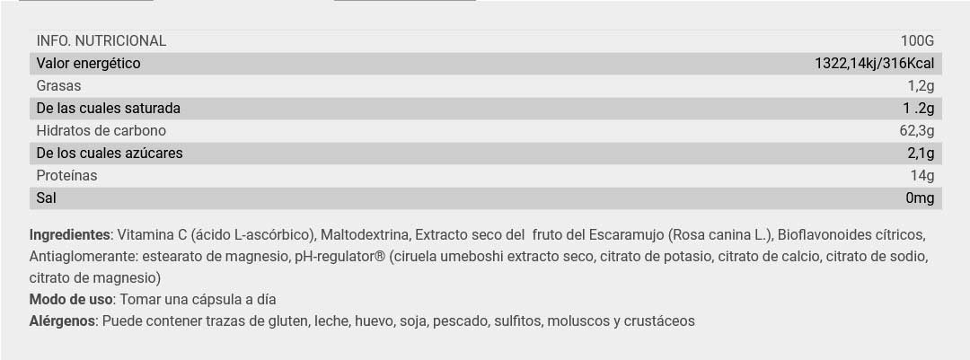 Vita C 1000 de BIG® contiene bioflavonoides y escaramujo que optimizara tu aporte de antioxidantes al maximo.